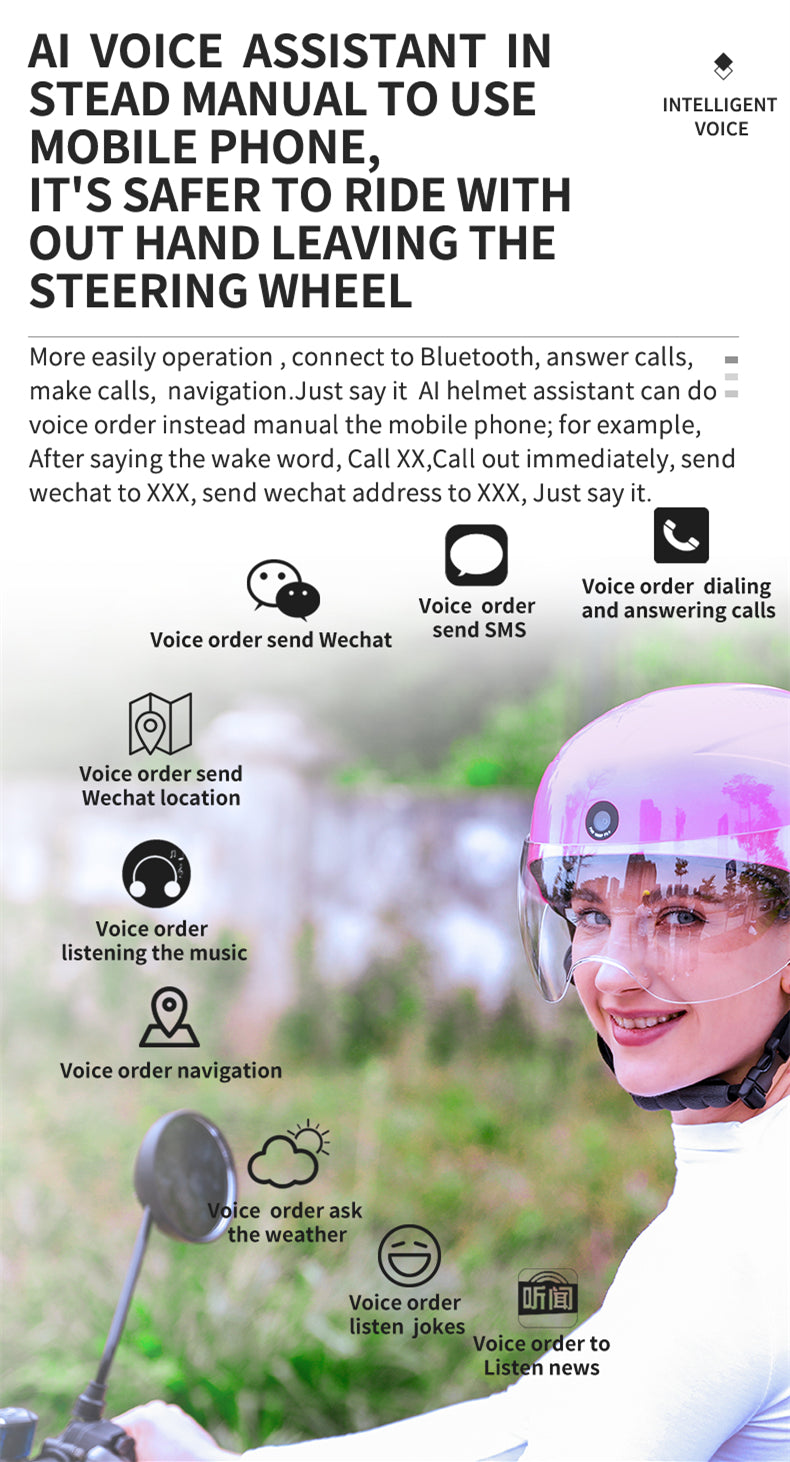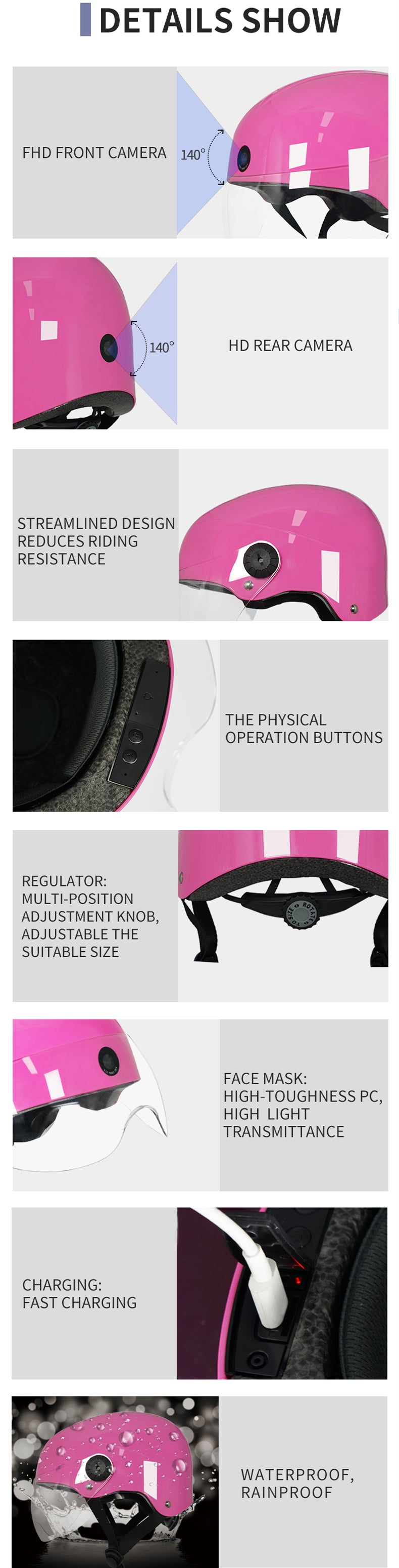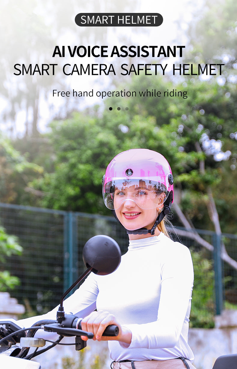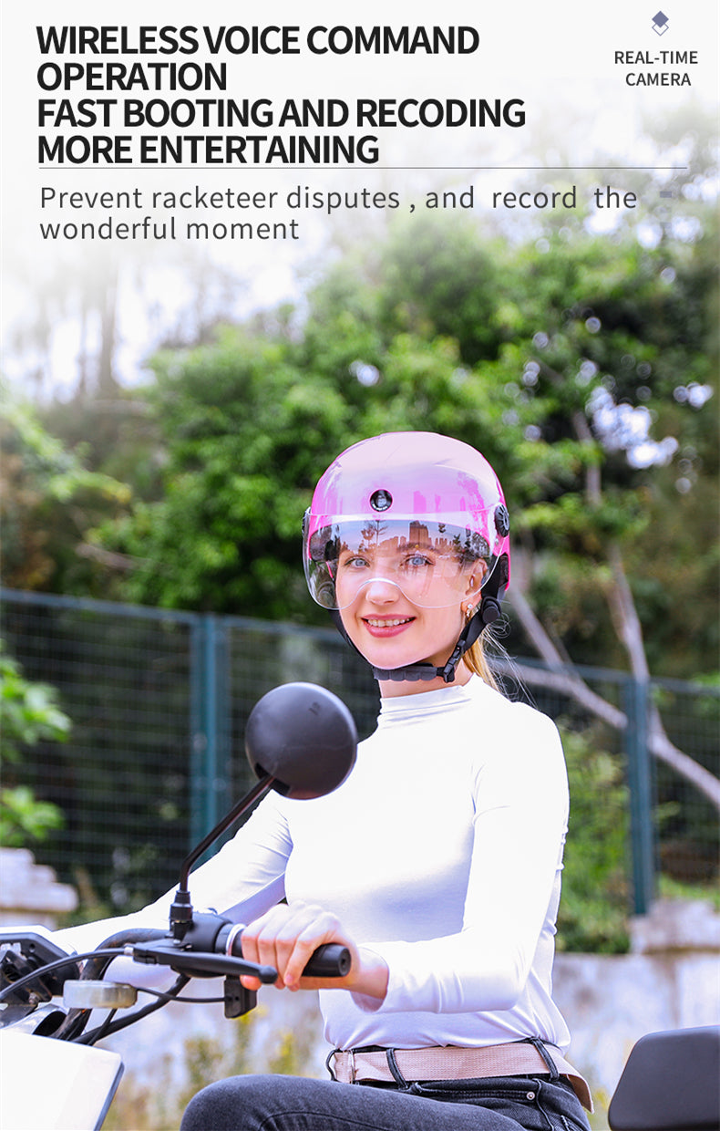 Casco inteligente AI con cámara integrada frontal y trasera HD, llamadas Bluetooth y WIFI, compatible con la aplicación de teléfono Live Check, Save and Share