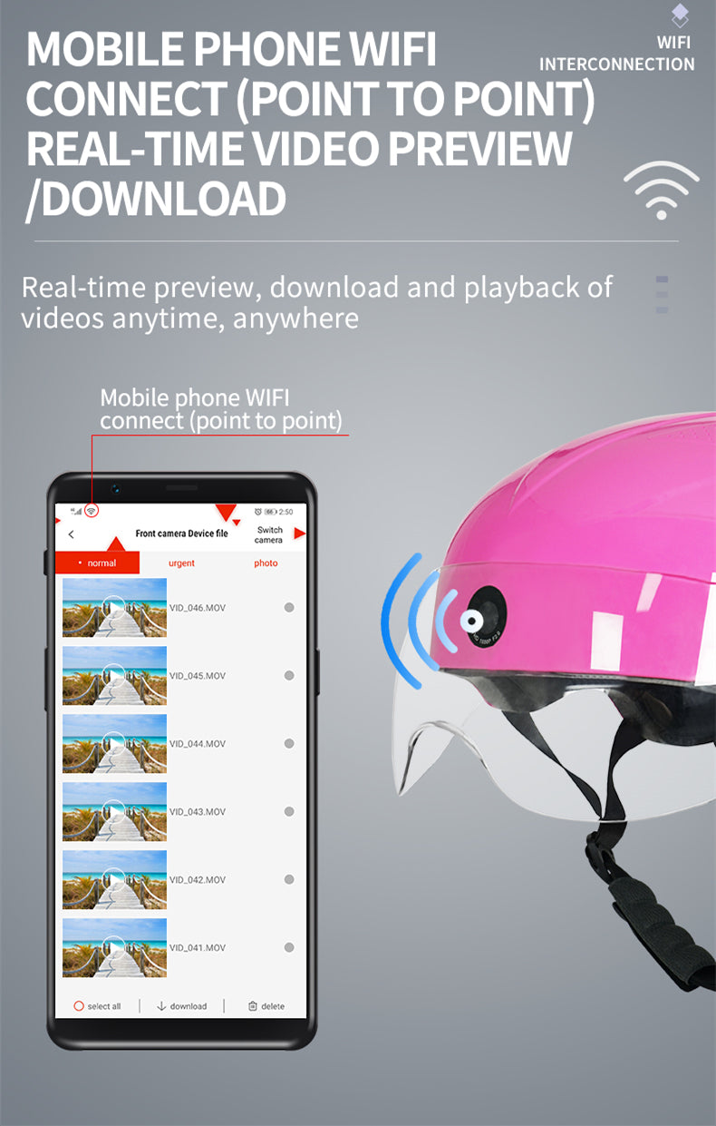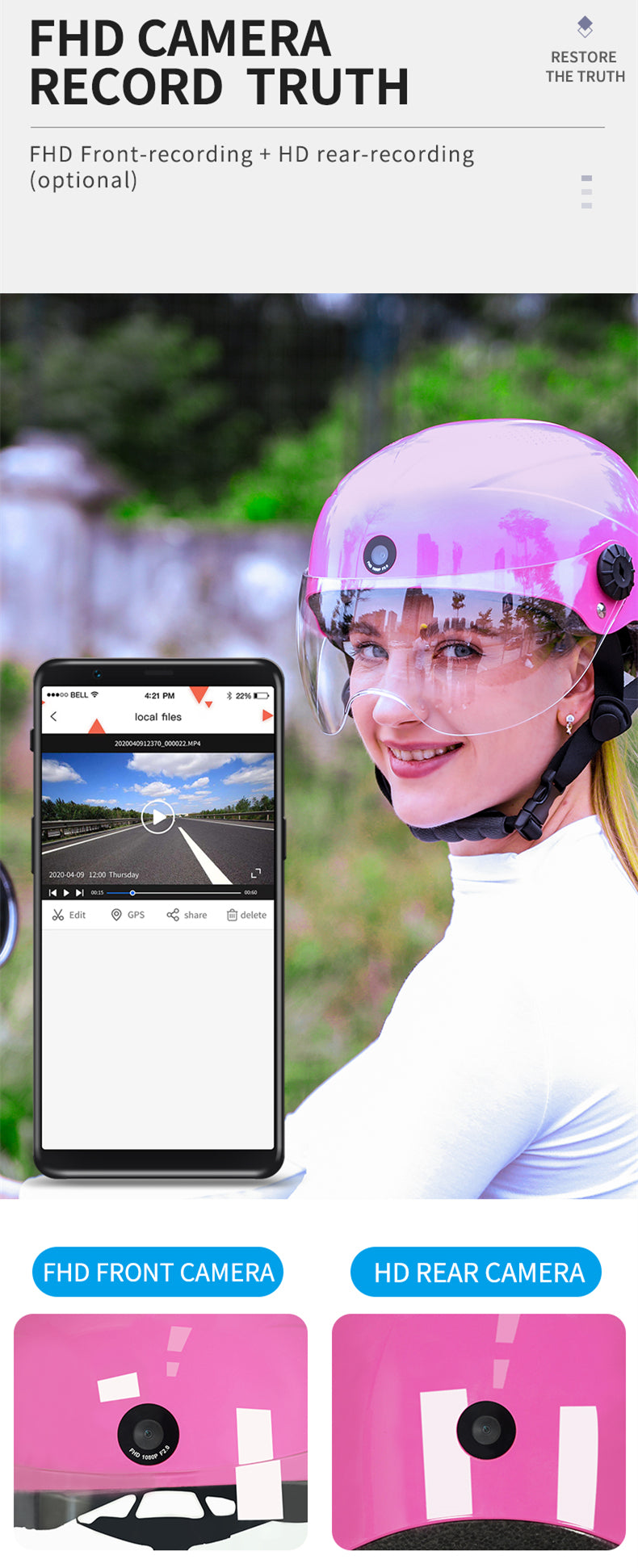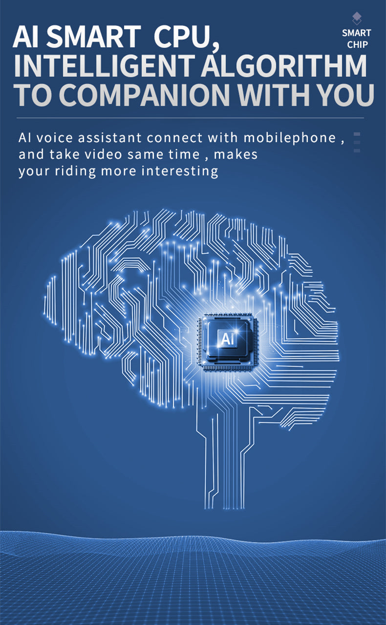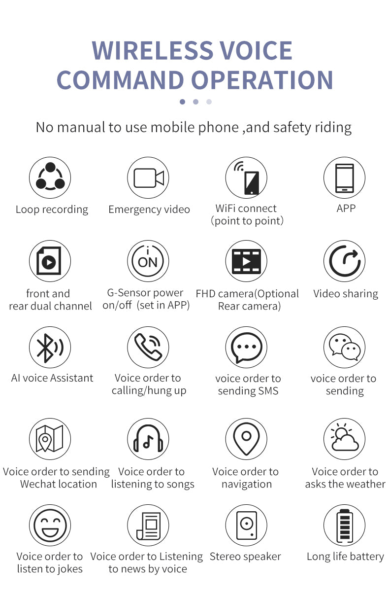 Casco inteligente AI con cámara integrada frontal y trasera HD, llamadas Bluetooth y WIFI, compatible con la aplicación de teléfono Live Check, Save and Share