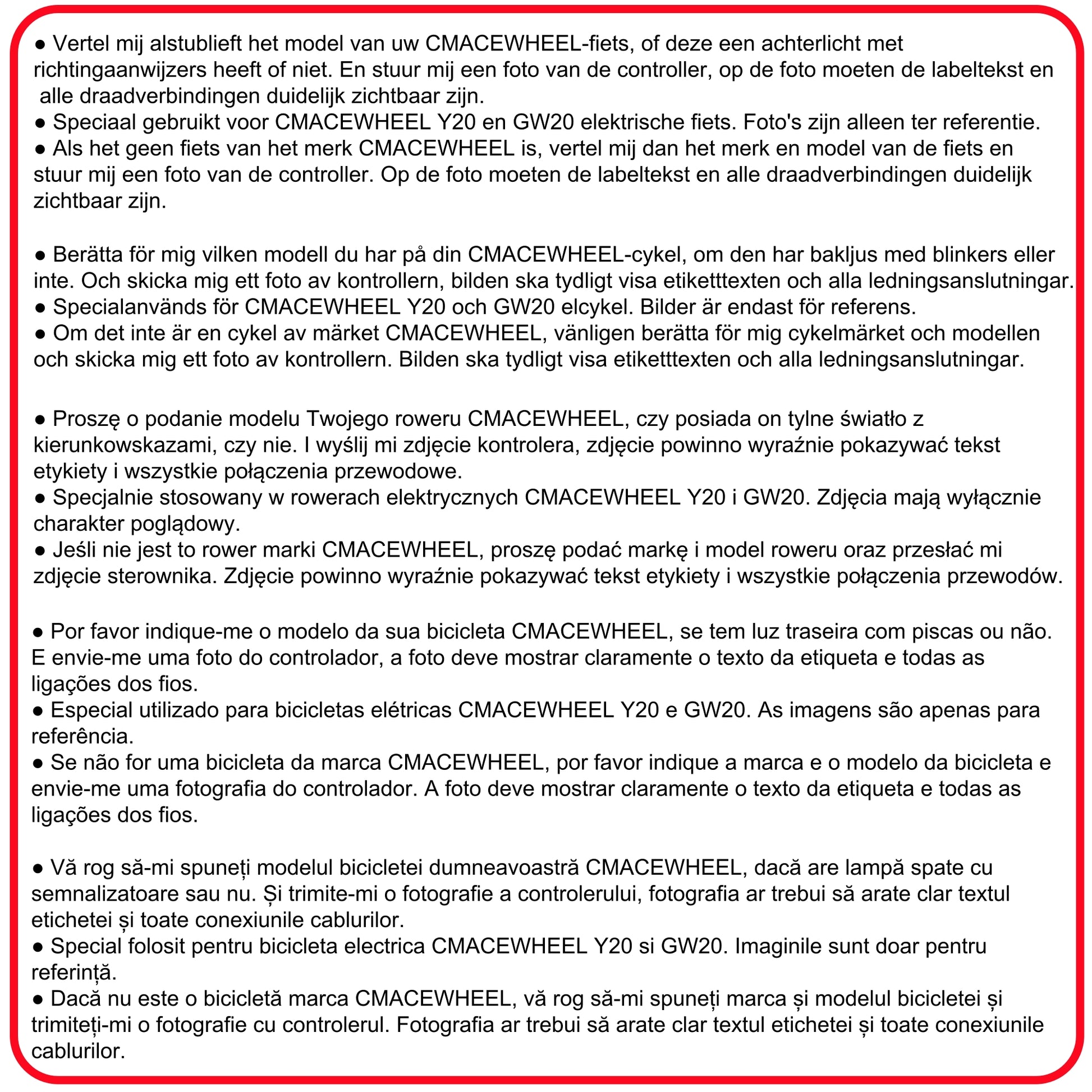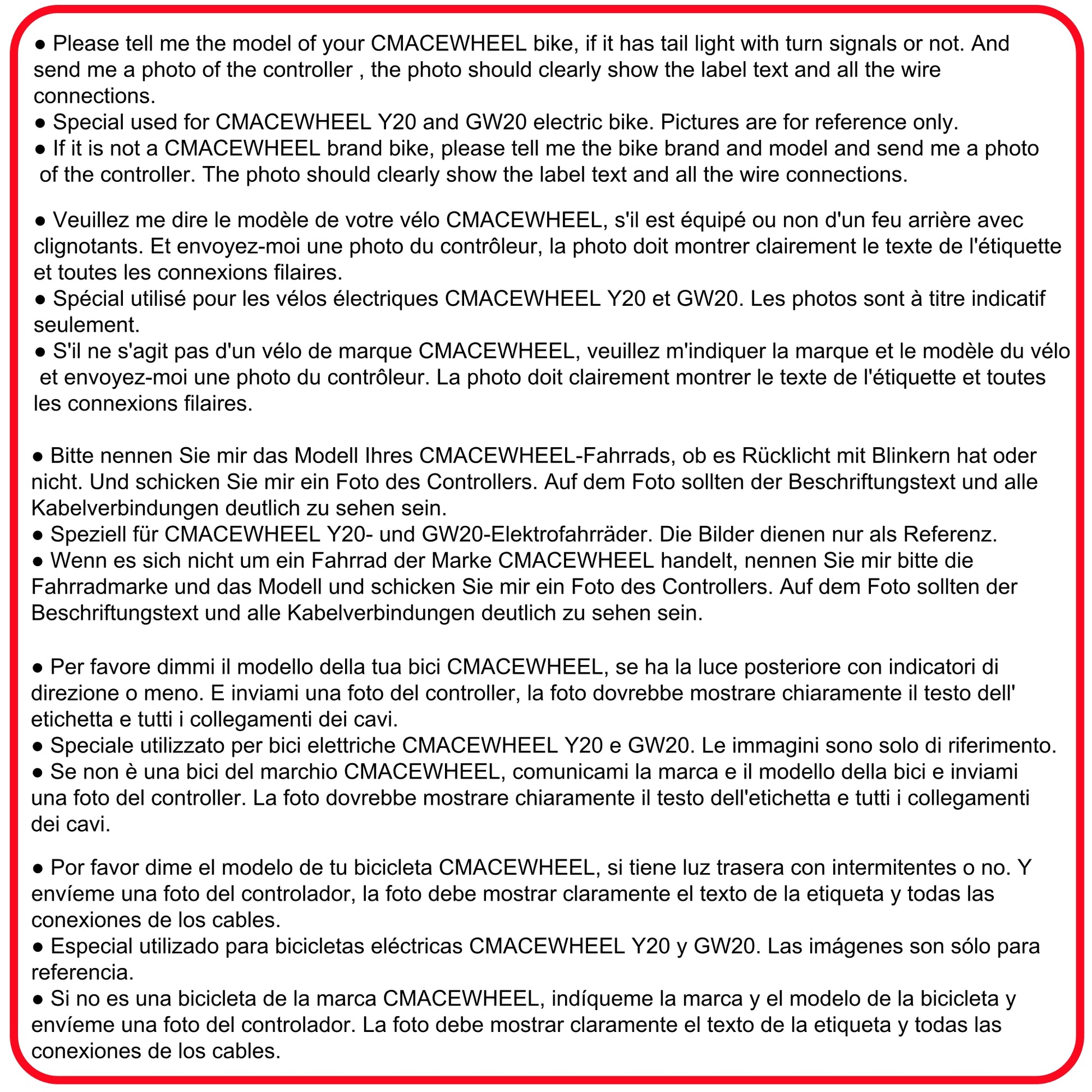 It only for CMACEWHEEL electric bike ! As the controller has different versions and different plugs / connector , please send us the overall picture of your original controller after placing order.